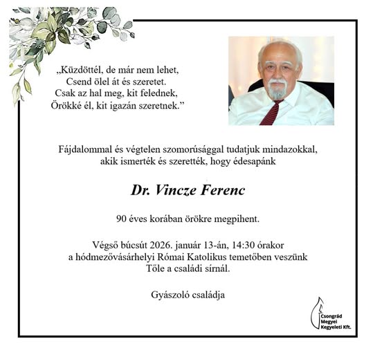 Törzskapitánysága, hogy Dr. vitéz Vincze Ferenc nemzetes úr 2026. január 6-án,